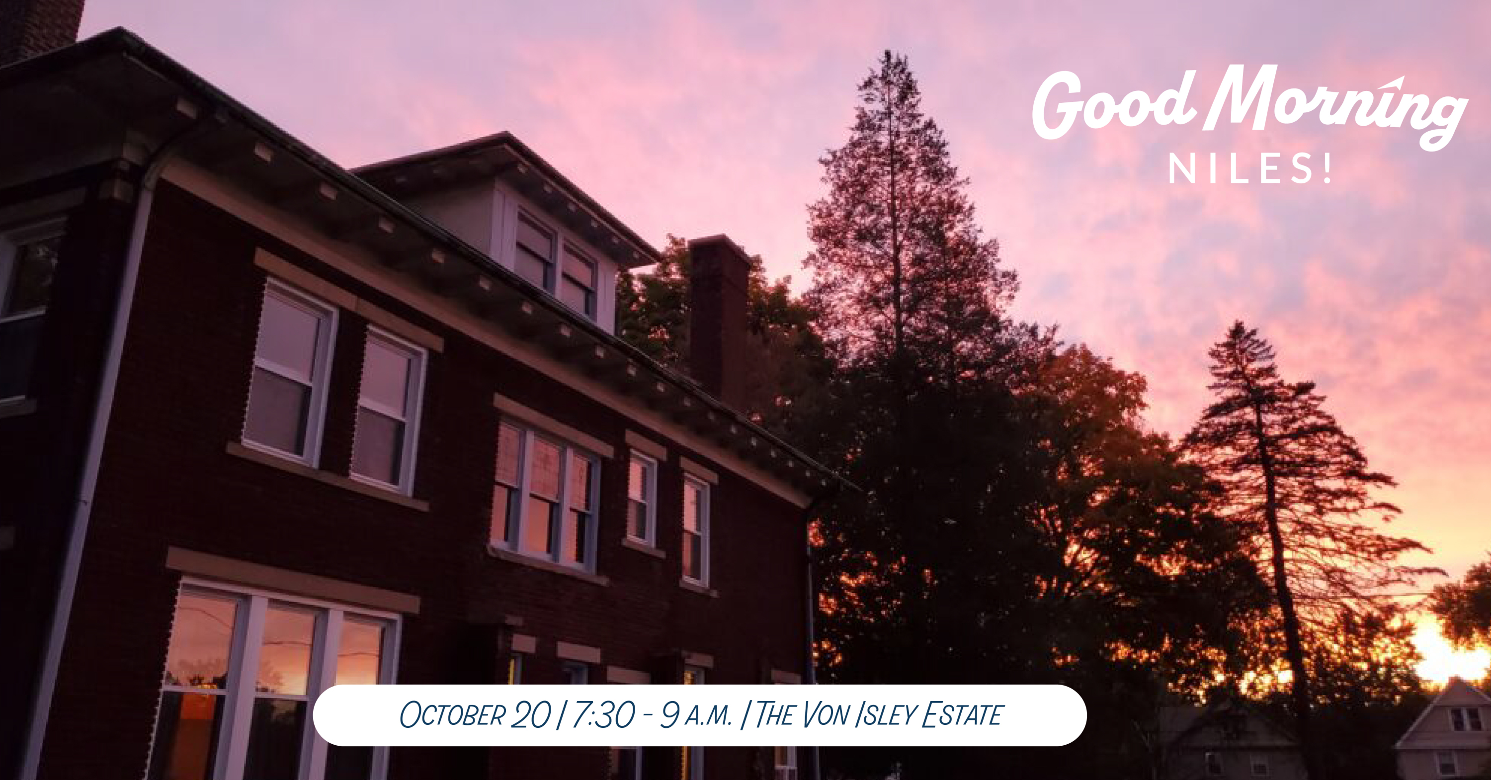 Join the Youngstown/Warren Regional Chamber for another Good Morning, Niles at The Von Isley Estate! The event will be held in Niles on Oct. 20th from 7:30am-9:00am.