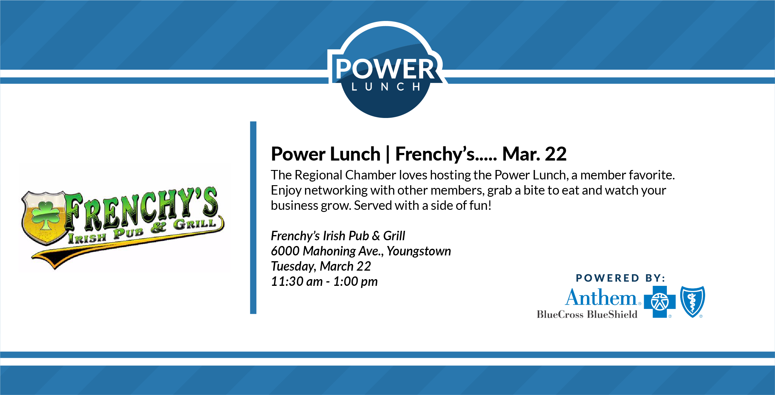 Connect with Chamber member friends at our Power Lunch! We will provide a complete roster at the time of the event so that you can follow-up with your fellow members.
